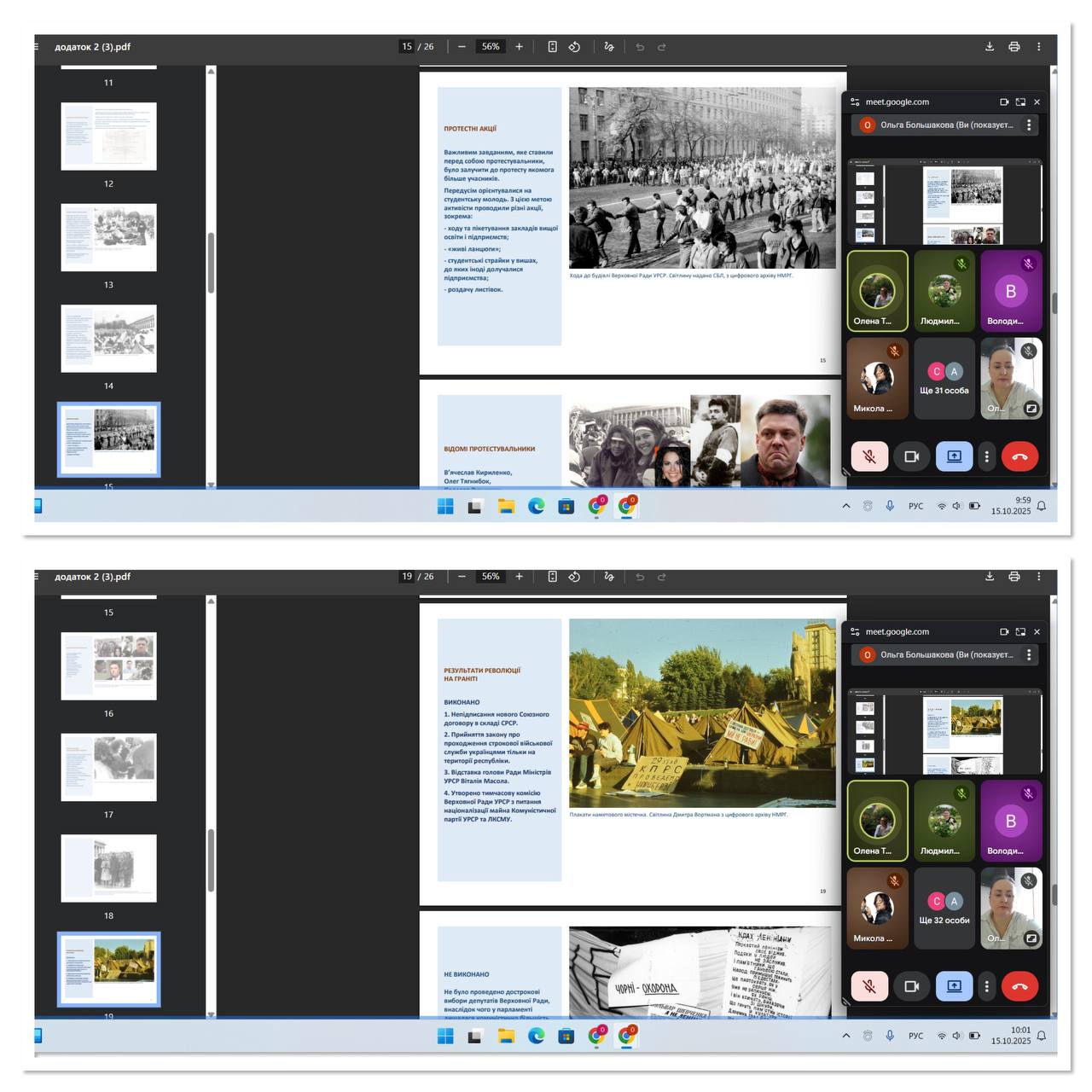 15 жовтня у ВСП «Фаховий коледж вимірювань ДУІТЗ» відбувся виховний захід, присвячений означеним подіям. Викладач історії Олена ТУРКОВА розповіла учасникам хронологію тих подій, з використанням тематичних інформаційних матеріалів, підготовлених Українським інститутом національної пам’яті та Національним меморіальним Комплексом Героїв Небесної Сотні – Музей Революції Гідності. Окрім того учасники заходу мали змогу передивитися відеоматеріали, а також задати уточнюючі запитання та надати власну оцінку описаним подіям.