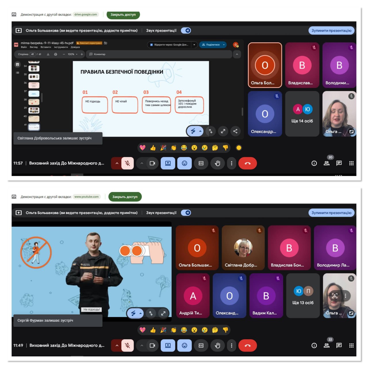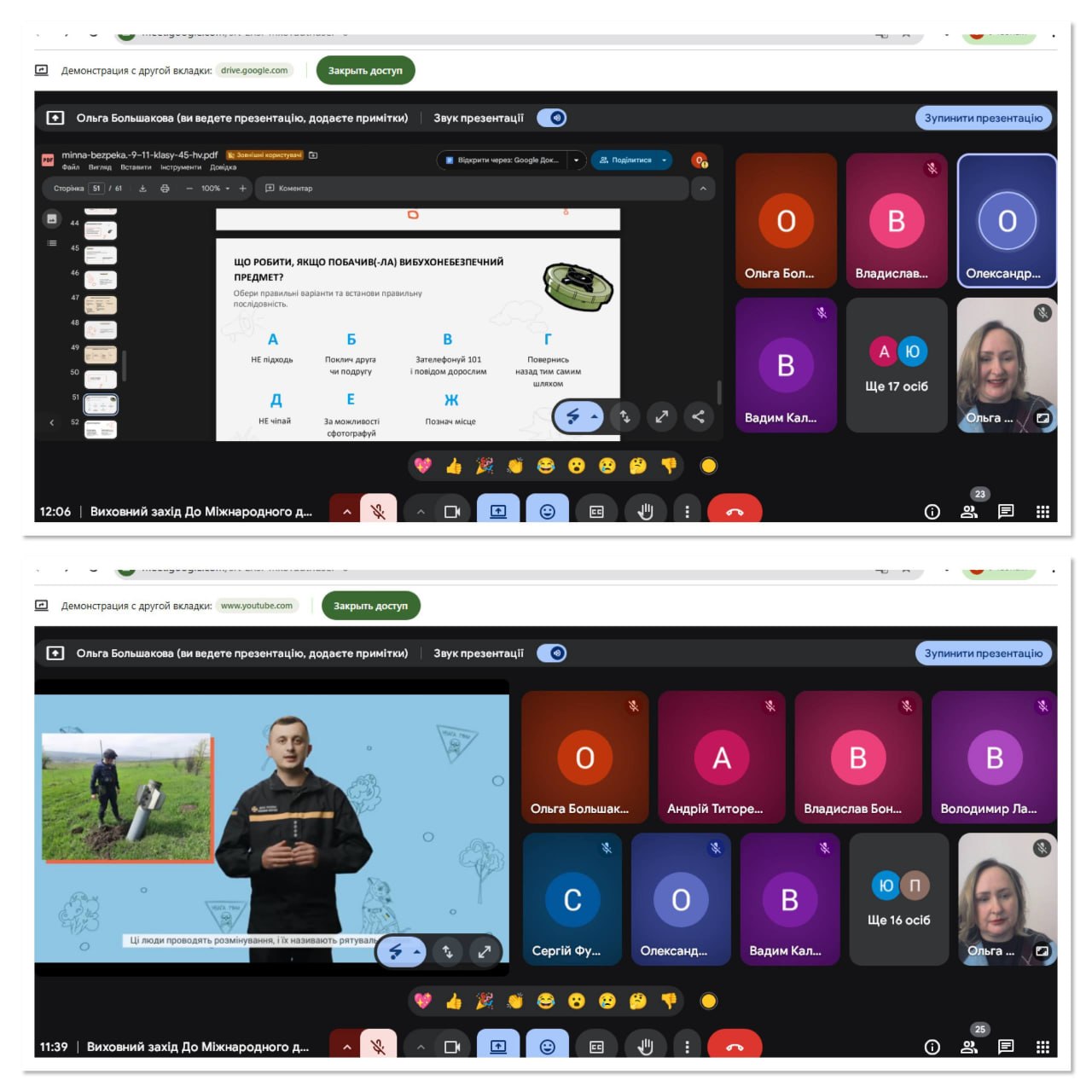 Мета заходу – підвищити обізнаність здобувачів освіти про загрозу, яку несуть вибухонебезпечні предмети для здоров’я та життя людей. Попри численні кампанії з інформування про мінну небезпеку, попереджувальні повідомлення знову і знову надходять звістки про нові жертви. Це є болючим нагадуванням про те, що таких заходів ніколи не буде достатньо. Викладач зазначила, що на теперішній час Україна є найбільш замінованою країною у світі. На деокупованих територіях виявлено протитанкові та протипіхотні міни, міни-пастки, міни-розтяжки, касетні боєприпаси, велику кількість снарядів, що не розірвалися, тощо.