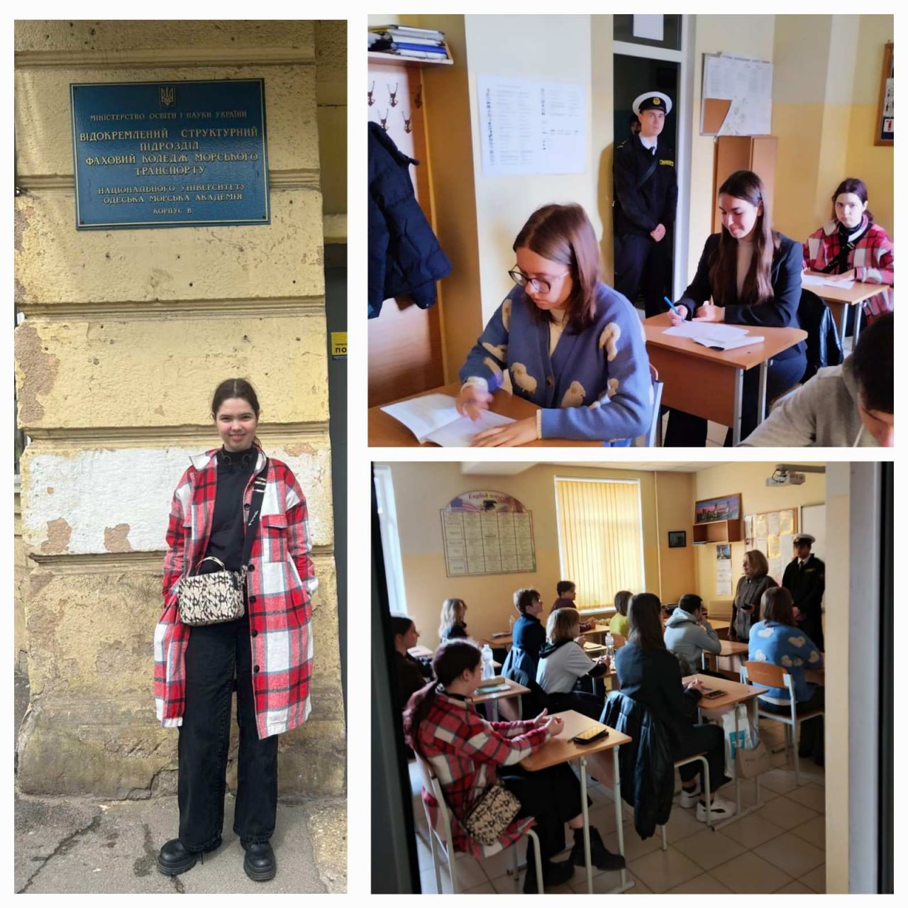 Змагання проводилися в очному форматі в ВСП «Фаховий коледж морського транспорту НУ «ОМА»», де учасникам були створені безпечні й комфортні умови. Всі учасники мали можливість випробувати себе в читанні, письмі, слуханні та говорінні англійською мовою. Нашу здобувачку освіти до олімпіади підготувала викладач англійської мови Олена ФОКША.