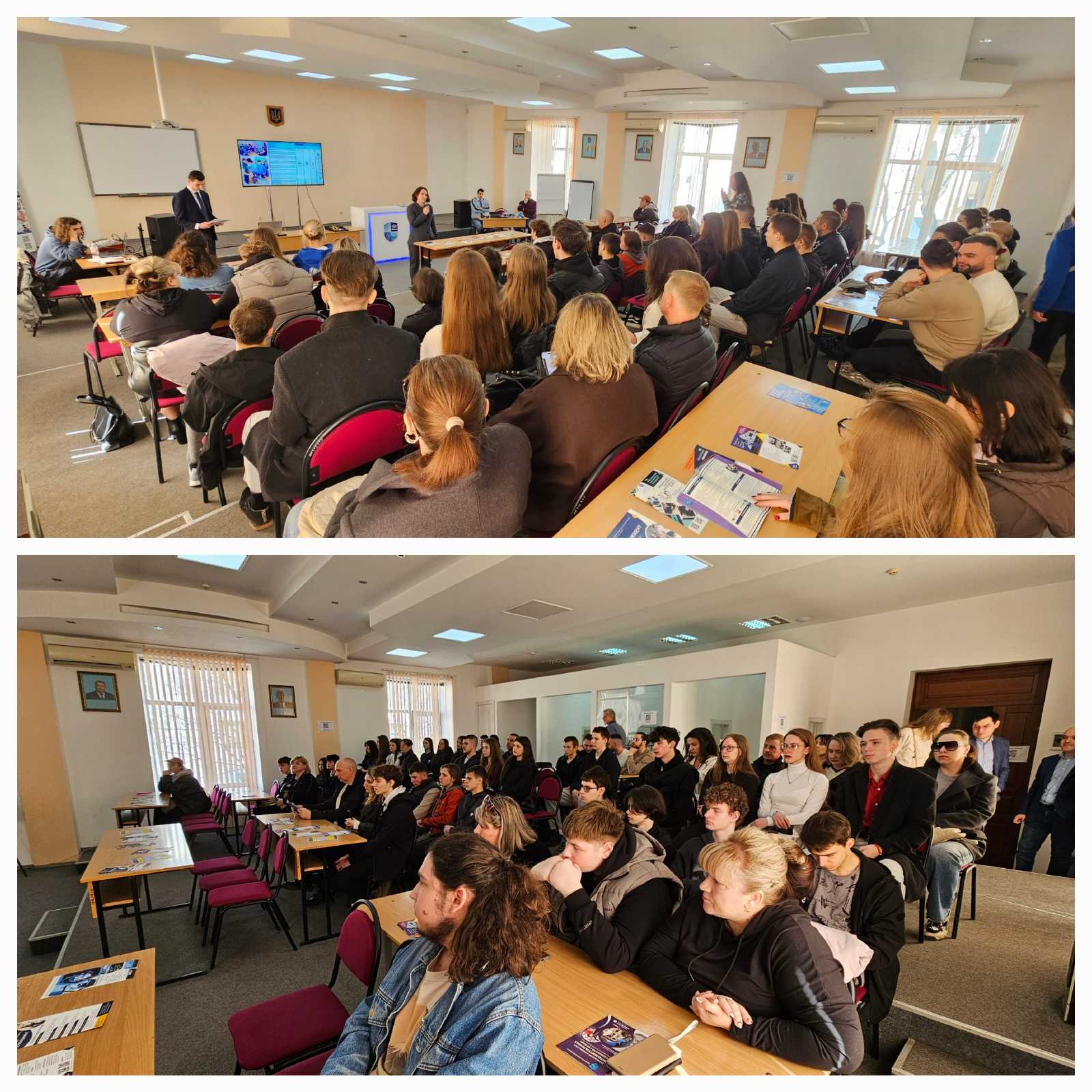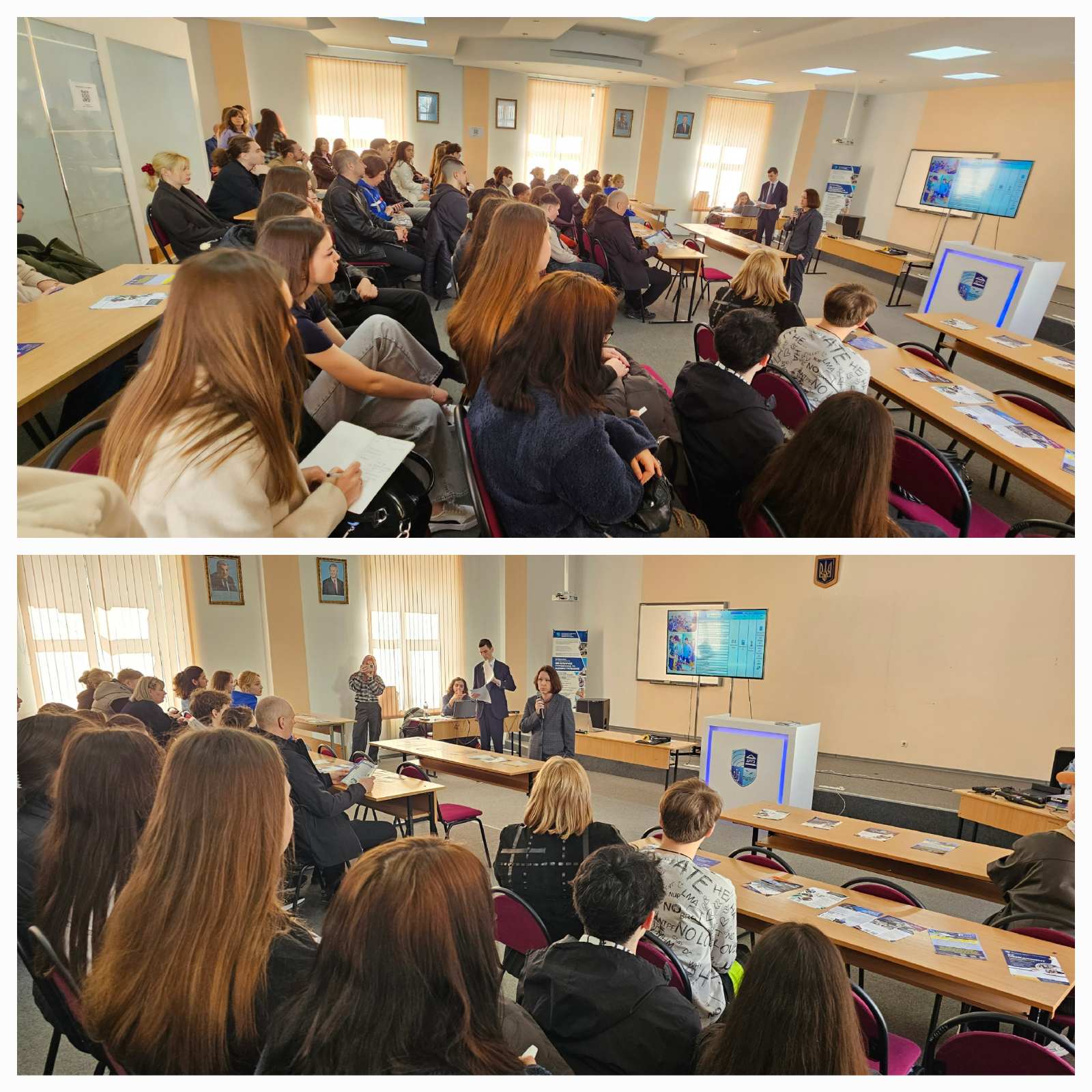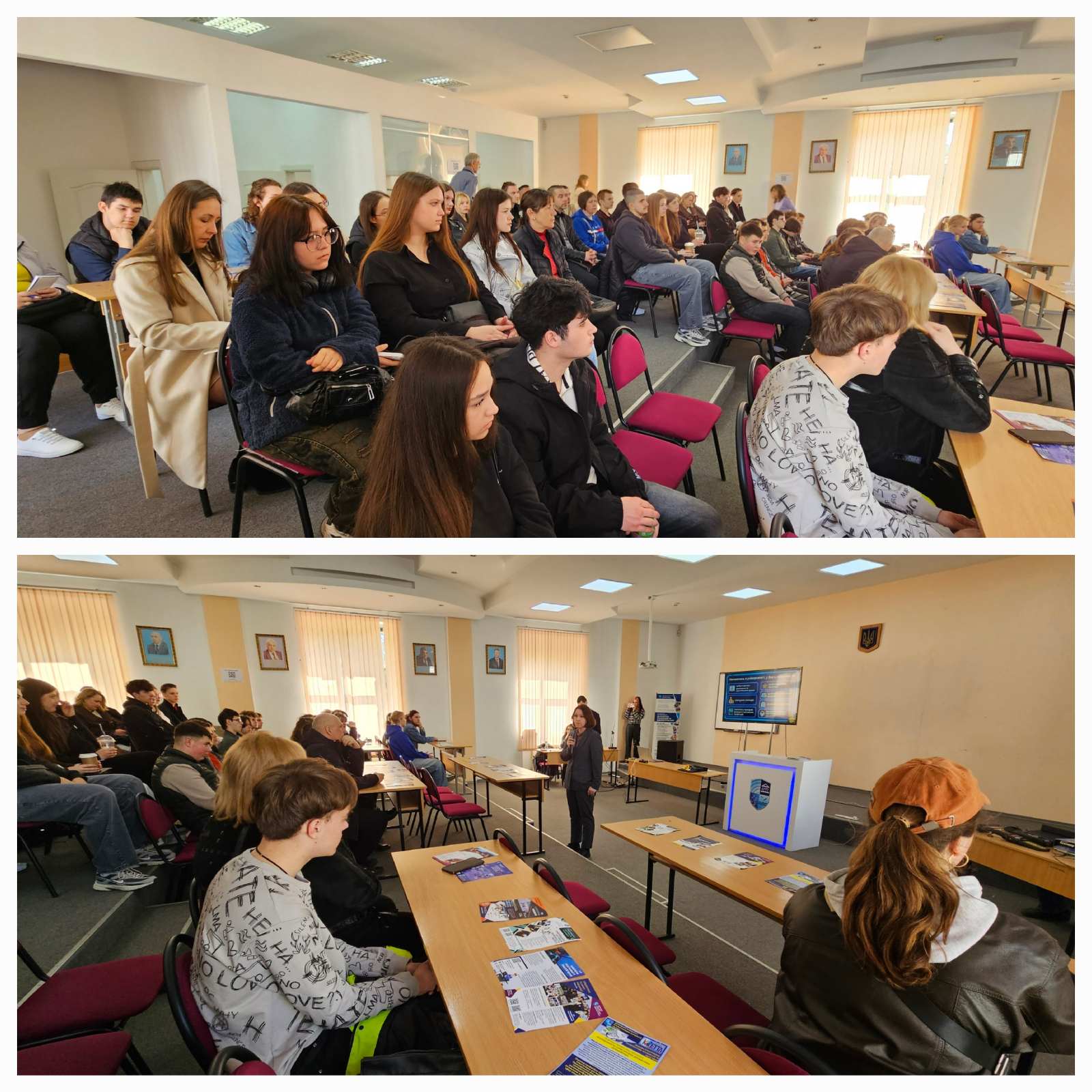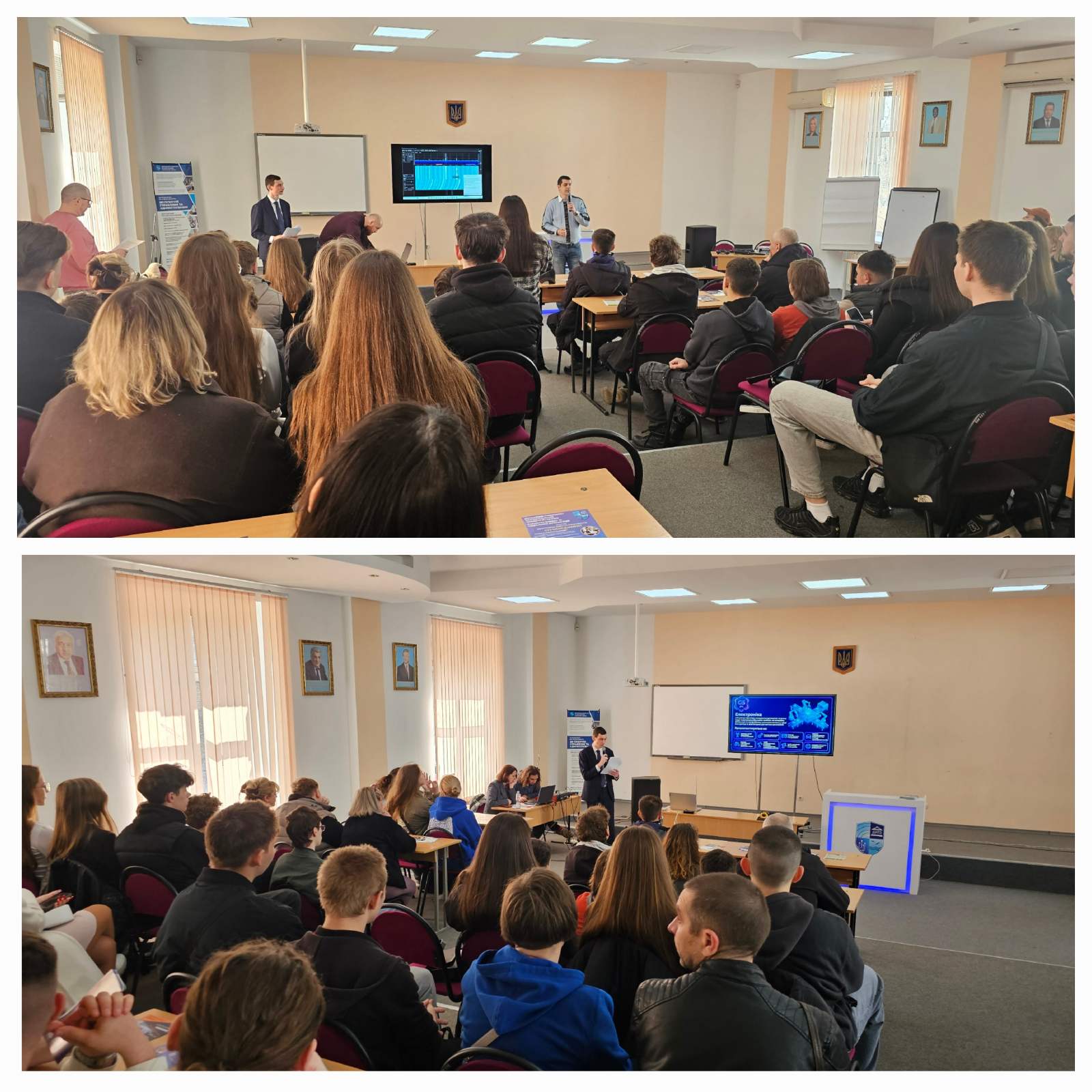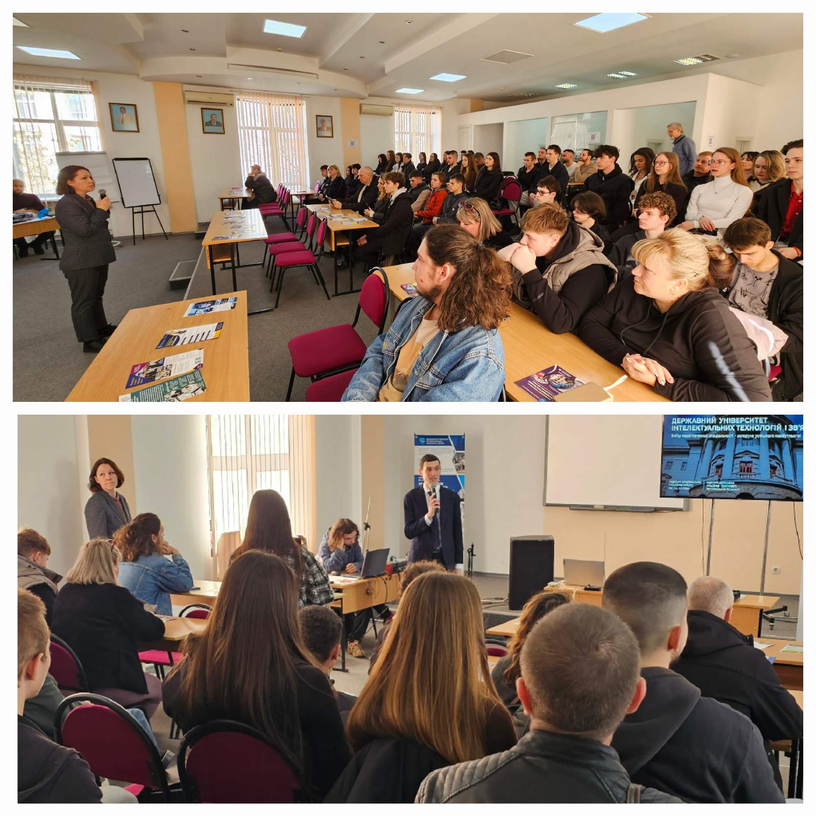 Під час заходу наші здобувачі мали змогу ближче познайомитися з ДУІТЗ, дізнатися більше про освітні програми, актуальні спеціальності, особливості вступної кампанії 2026 року, можливості проходження практики у провідних компаніях, а також про насичене й активне студентське життя. Ведучим заходу став Кирило Ульянов, представник студентського самоврядування ДУІТЗ, він розповів про переваги навчання в ДУІТЗ, про заходи, які відбуваються в університеті та формат навчання.